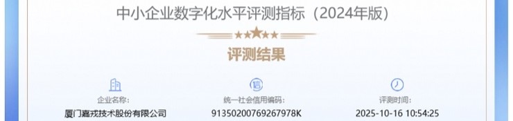 喜訊!嘉戎技術(shù)獲評《中小企業(yè)數(shù)字化評測指標(biāo)》三級認(rèn)證